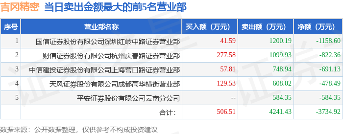 证券之星消息中国配资网官网,沪深交易所2025年9月2日公布的交易公开信息显示,吉冈精密(836720)因当日换手率达到20%的前5只股票,当日收盘价涨幅达到20%的前5只股票登上龙虎榜。此次是近5个交易日内第1次上榜。
