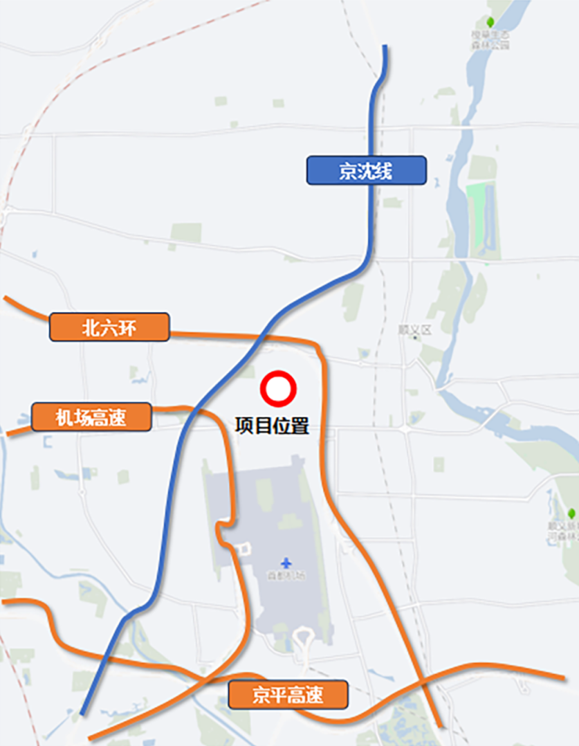 项目紧邻京密快速路(京沈路)、北六环及机场高速,区位优势明显,既有利于入驻企业享受临空经济的辐射效应,又能让其依托快速路网实现高效配送。项目总占地面积13000余平方米,总建筑面积达8756.61平方米,涵盖单层生产厂房、雨棚及研发办公与生活服务设施。建筑结构为地上1层局部4层,单体最高点19.9米。地下空间包含设备用房及消防水池等。